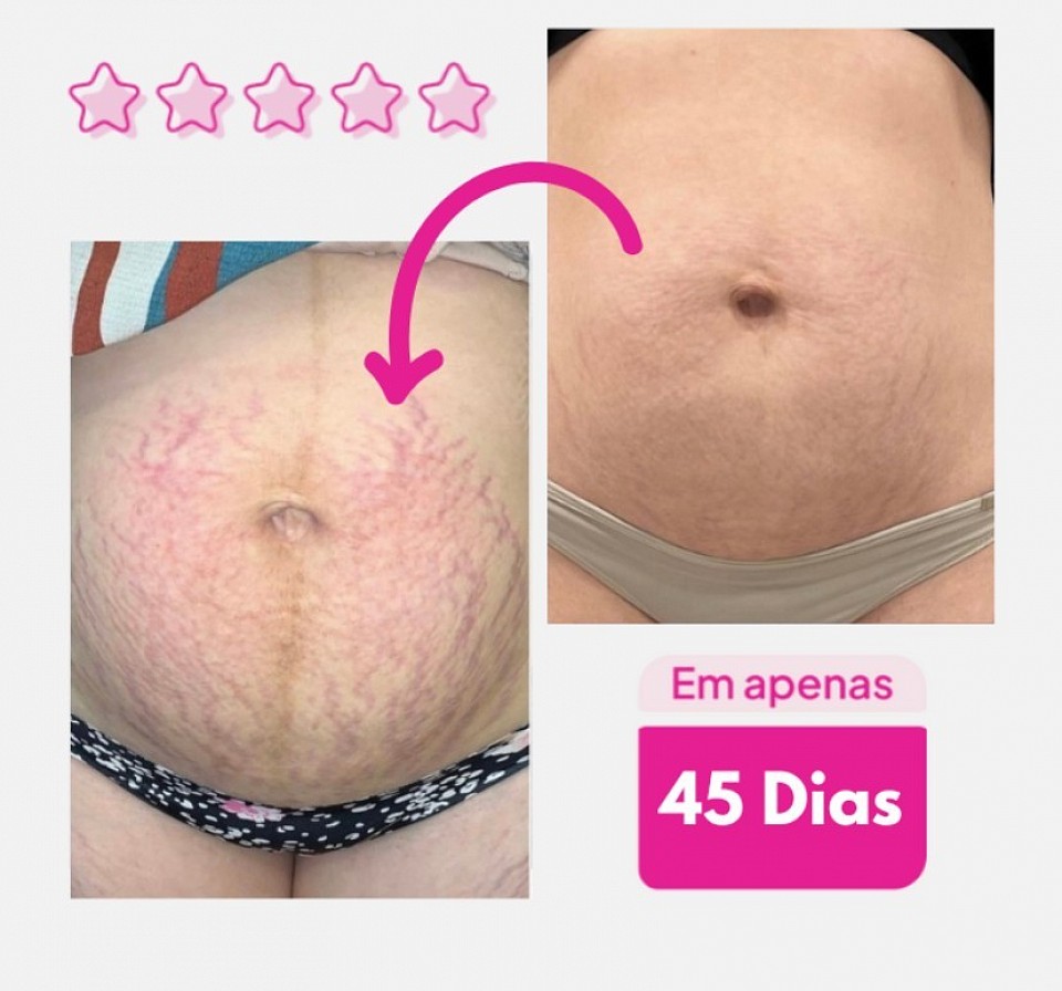 O creme ADEUS começa a agir, combatendo e prevenindo estrias, deixando sua pele mais lisa, uniforme e renovada.